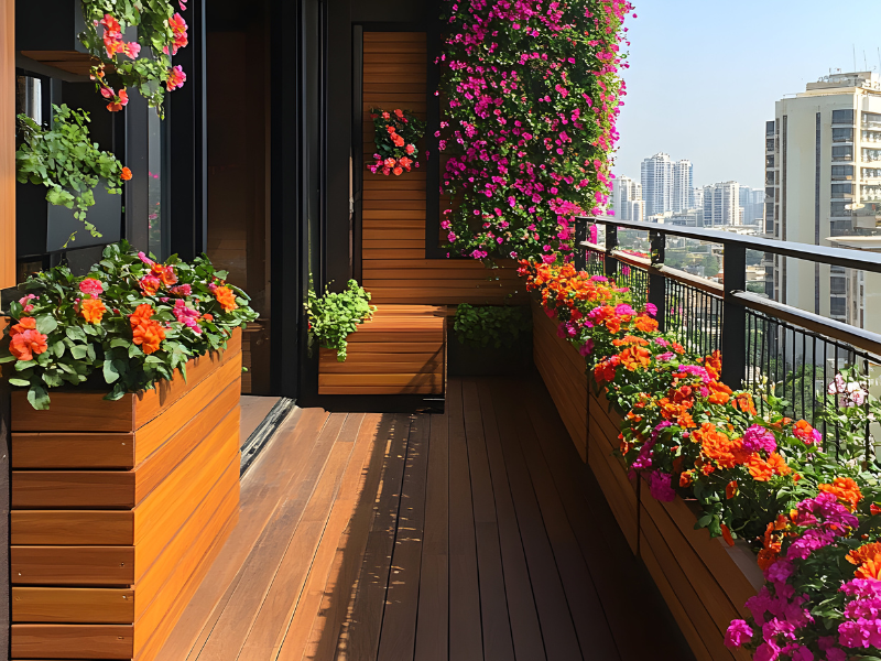 I didn’t expect our small balcony to turn into such a peaceful corner. With minimal furniture and vertical planters, it feels spacious and calm, perfect for reading or unwinding after work.