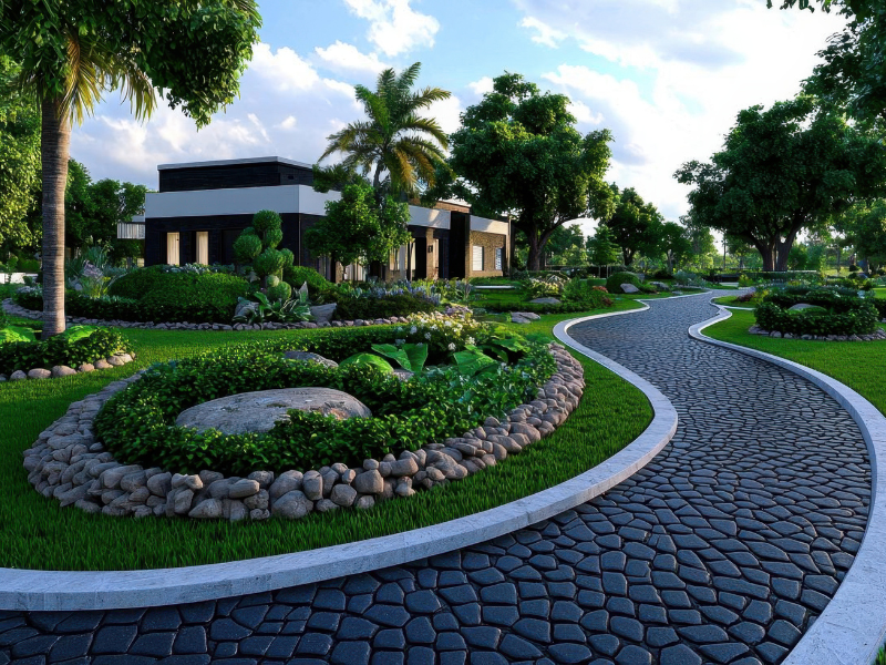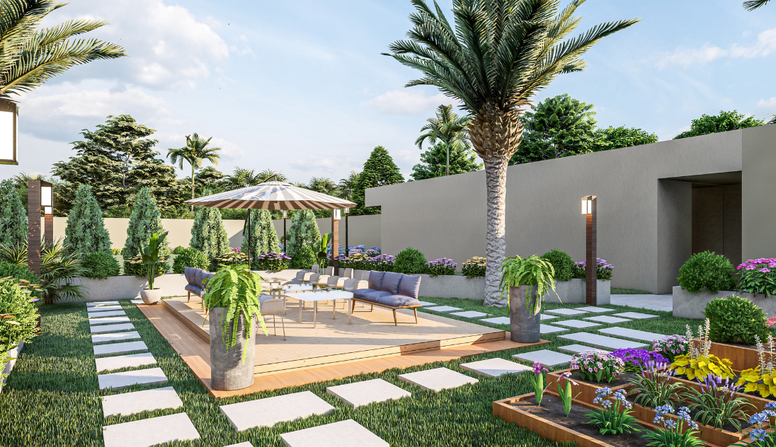 Our landscape design package includes site assessment, concept & mood boards, 2D & 3D layouts, material selection, and vendor recommendations for smooth execution.